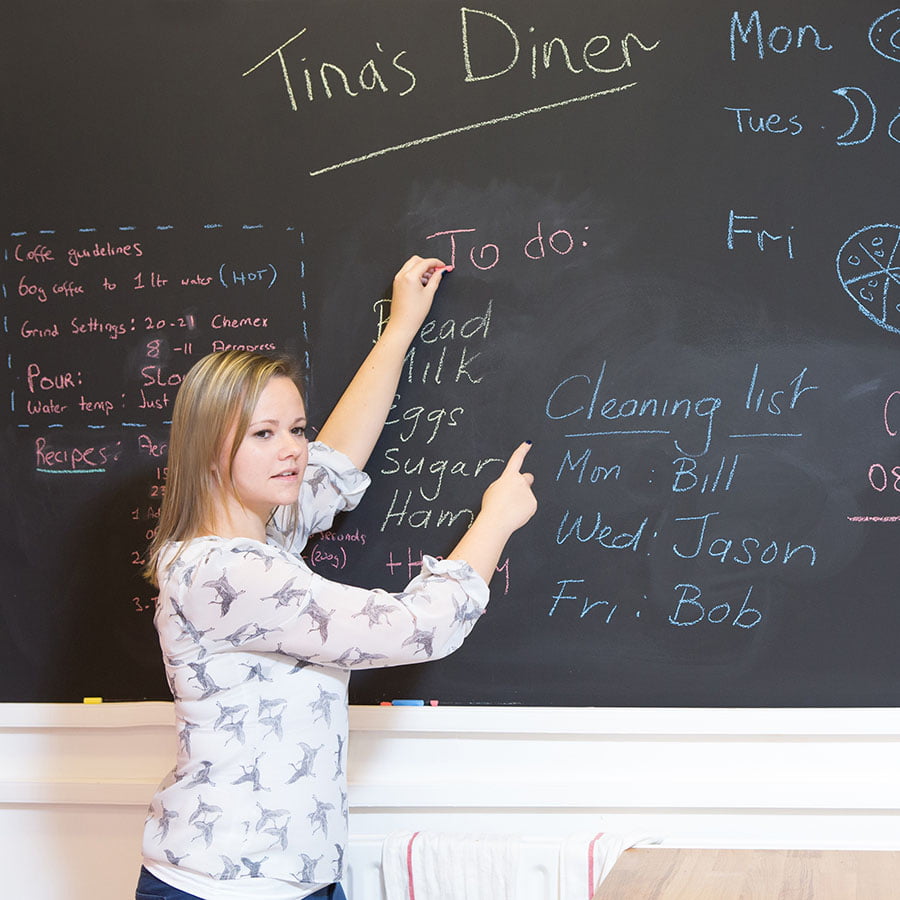Just wipe away chalk with a dry or damp cloth, and the surface is ready for your next set of notes, sketches, or reminders.