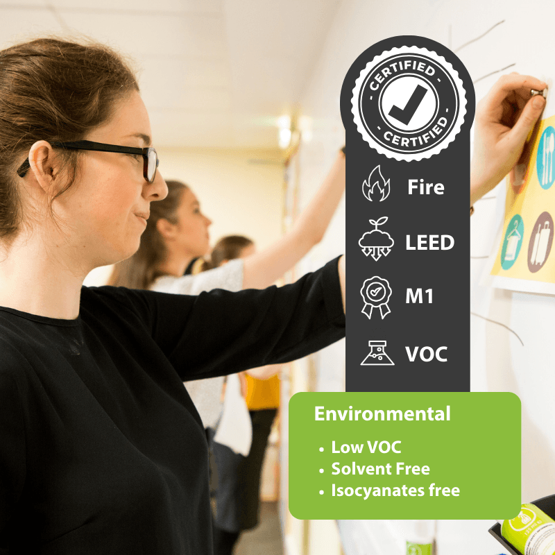 Smarter Surfaces magnetic whiteboard wall paint is eco-friendly with low VOC levels and isocyanate-free. It has a safe and hassle-free application.