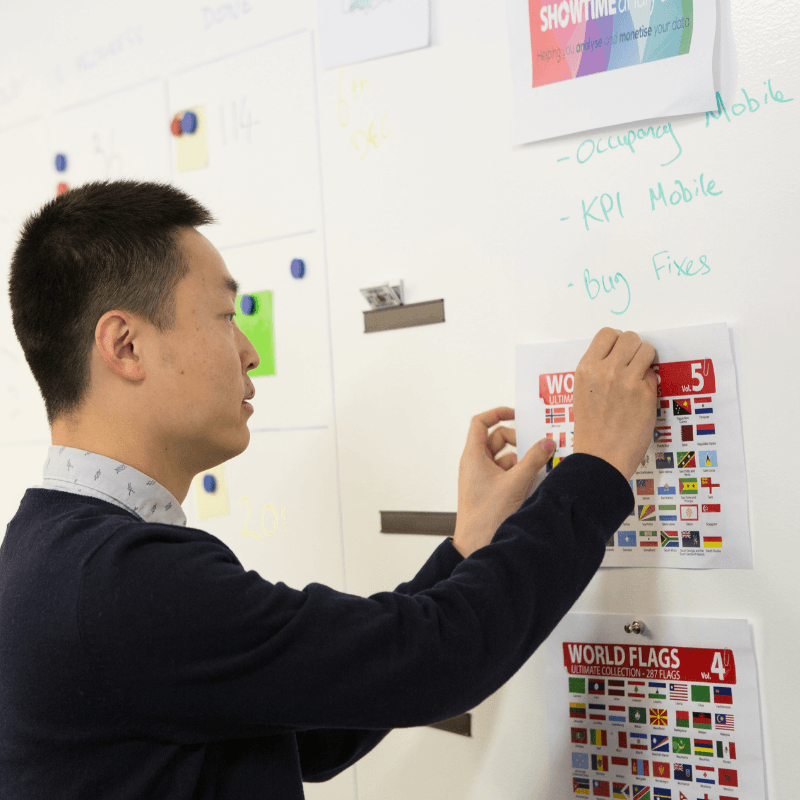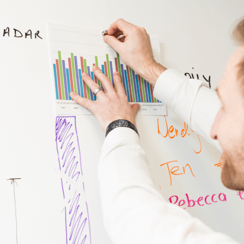 We chose a magnetic whiteboard wall from Smarter Surfaces because the product is very innovative and best fits our daily work needs. The large wall gives us an incredible amount of space and makes meetings more lively and effective.